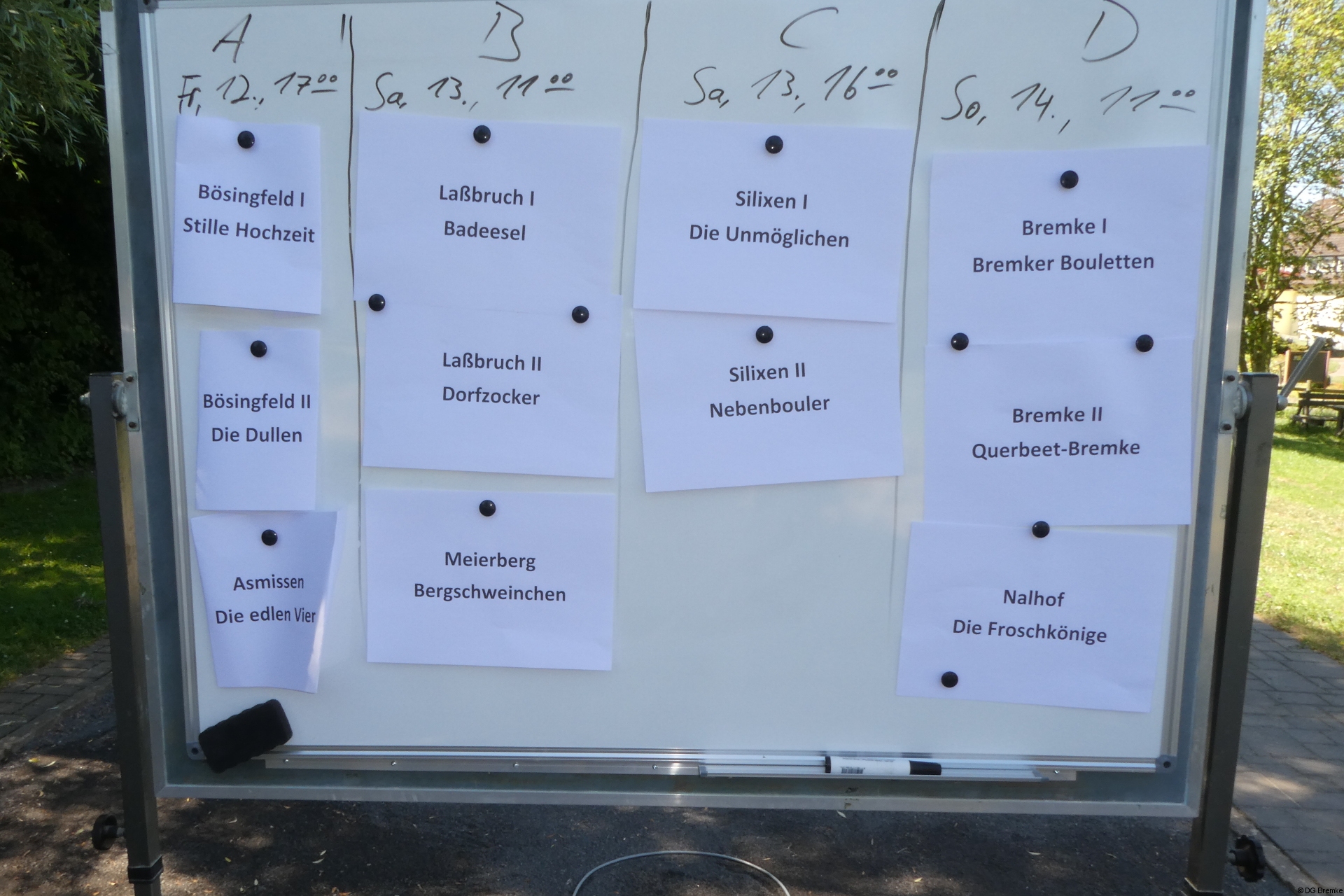 Turnierleitung der gesamten Meisterschaft lag in den Händen der Boulewarte der Dorfgemeinschaft Bremke e.V.. Die „Bremker Bouletten“ traten außerdem als Titelverteidiger an.