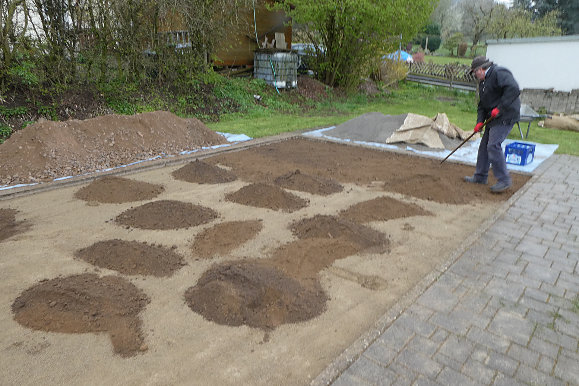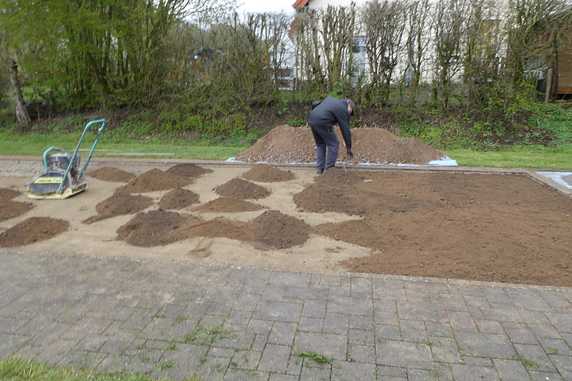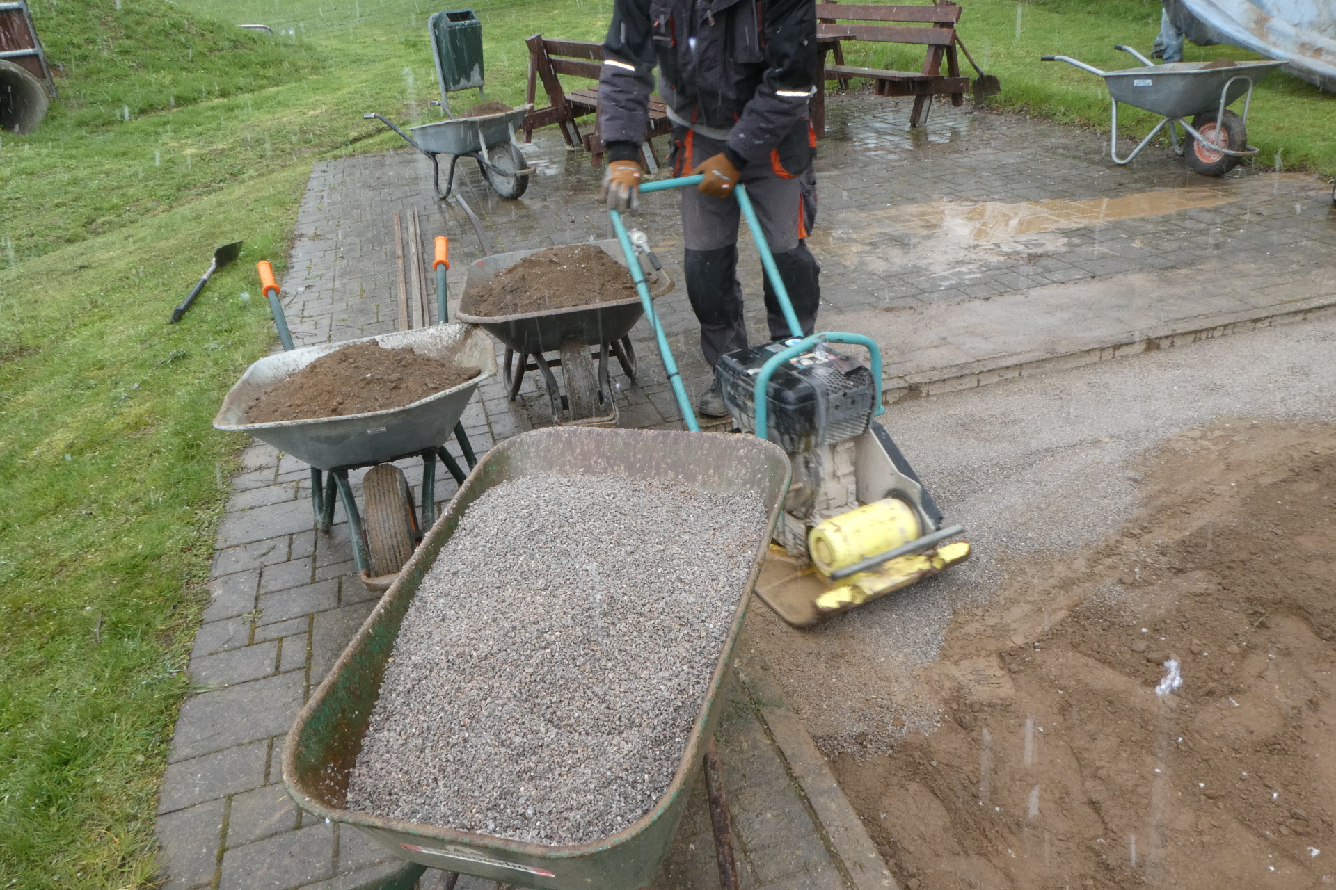 In der darauf folgenden Woche wurden nach der Verfestigung noch einmal ca. 2 t Brechsand besorgt und über der ganzen Fläche aufgebracht.