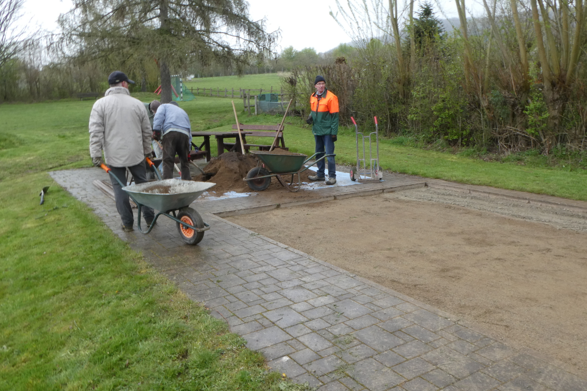 Am 13. April fand auf dem Mehrgenerationenspielplatz ein Arbeitseinsatz rund um die Boulebahn statt. Dieser Aufruf kam nicht direkt von dem Vorstand der Dorfgemeinschaft, sondern von der Boule-Sparte.